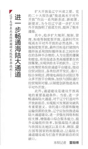 《辽宁日报》丨毕德利:进一步畅通海陆大通道